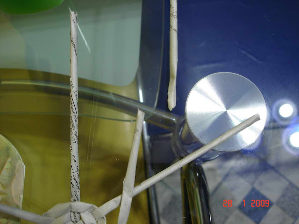 Когда трубочка заканчивается, внутрь её капаем чуть-чуть ПВА, берем новую трубочку, чуть-чуть сминаем кончик и запихиваем его в отверстие с клеем